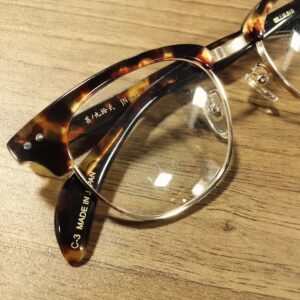 「越前国 甚六作」のサーモントブロータイプの入荷です。 2025年10月7日 glasstaradmin 今日もお疲れ様です。 三重県松阪市のグラスターです。 「越前国 甚六作」のサーモントブロータイプの入荷です。 お手本通りのブロータイプで、肩部分〜ブリッジ部(中央)への流れ方など、かなり好みです。 ブラウンまだら&ゴールドメタルで、サイドの線の切りこみが非常にいいですね! ぜひお試し下さい。 10月15(水).16(木) は、東京展示会の仕入れの為お休みとなります。 どうぞ宜しくお願い致します。